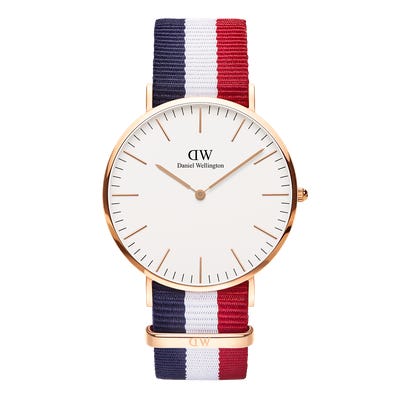 Inspired by the gorgeous colors of a classic flag, this red, white and blue NATO band celebrates timeless preppy American fashion. The playful band, when paired with the simplistic and elegantly slim dial, gives you a timepiece that can be worn to both work and after work.
