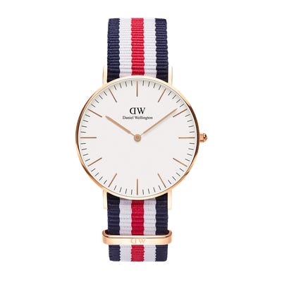Inspired by the gorgeous colors of a classic flag, this red, white and blue NATO band celebrates timeless preppy American fashion. The playful band, when paired with the simplistic and elegantly slim dial, gives you a timepiece that can be worn to both work and after work.